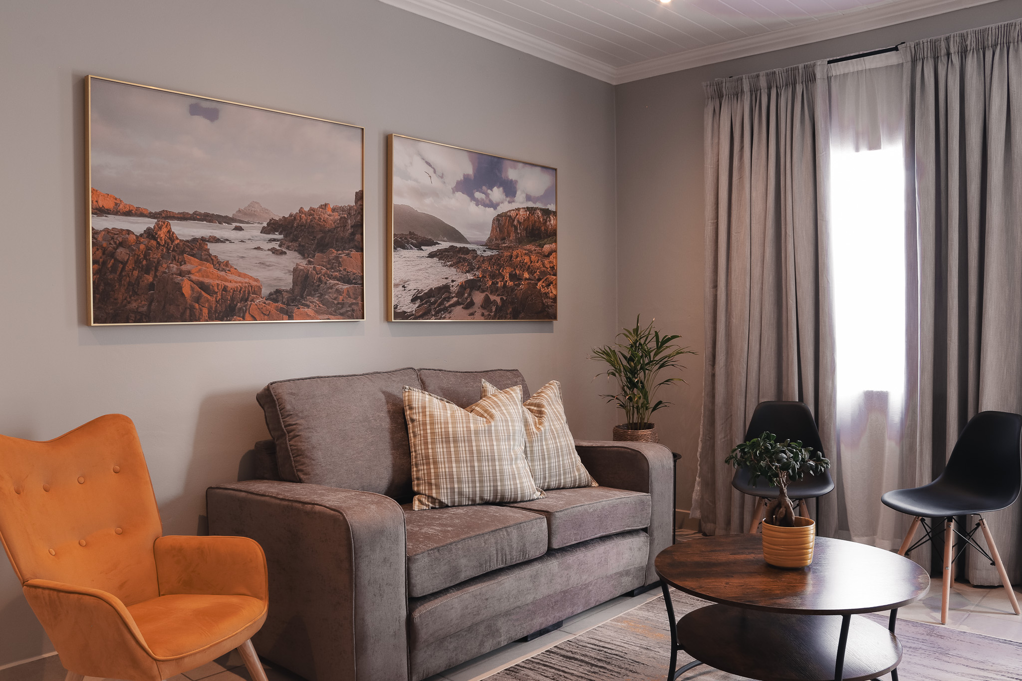 Immerse yourself in the warm glow of Knysna’s breathtaking sunsets in this beautifully decorated suite. With two cozy bedrooms, a spacious lounge, and semi-equipped kitchenette, the Sunset Room is ideal for families or groups of up to four, with an added sleeper couch for extra guests. Relax in a space inspired by nature’s golden hour, where comfort meets charm.