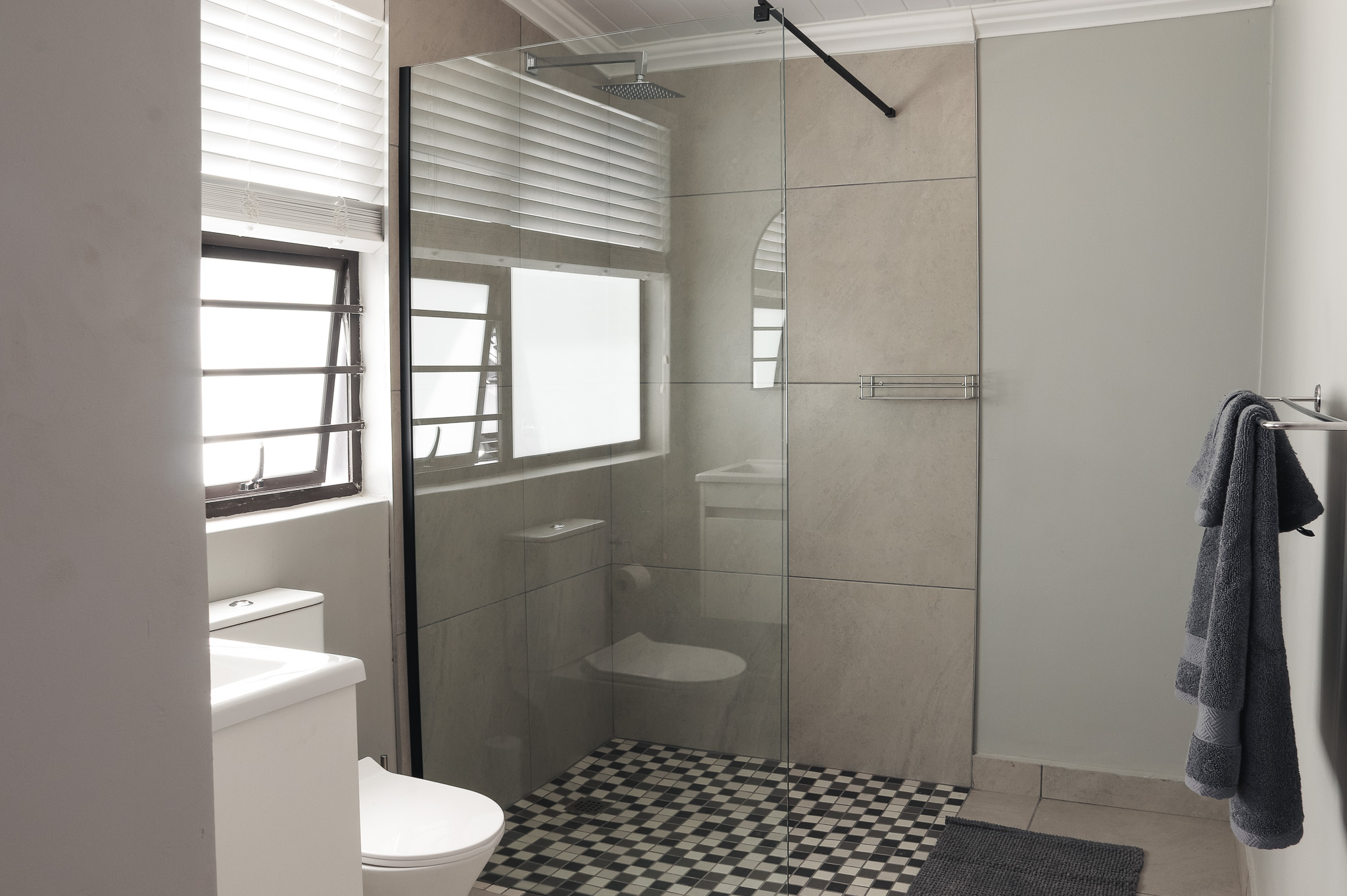 A spacious, modern bathroom with soothing touches to help you unwind after a day by the water.